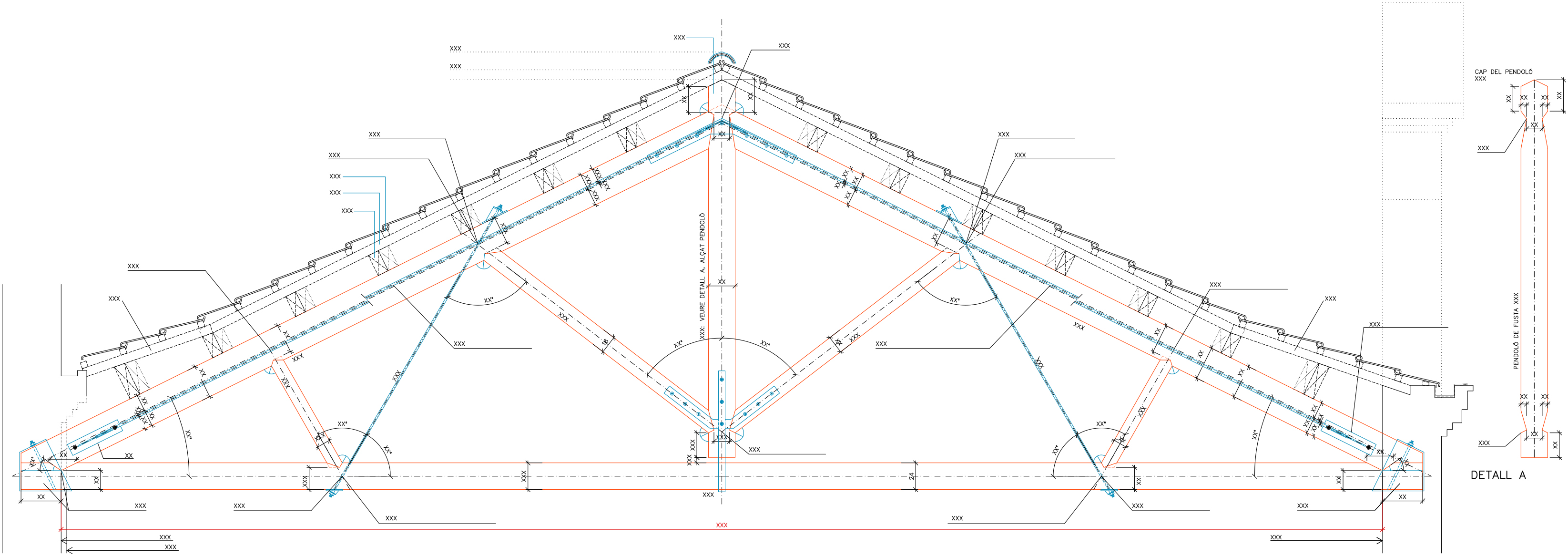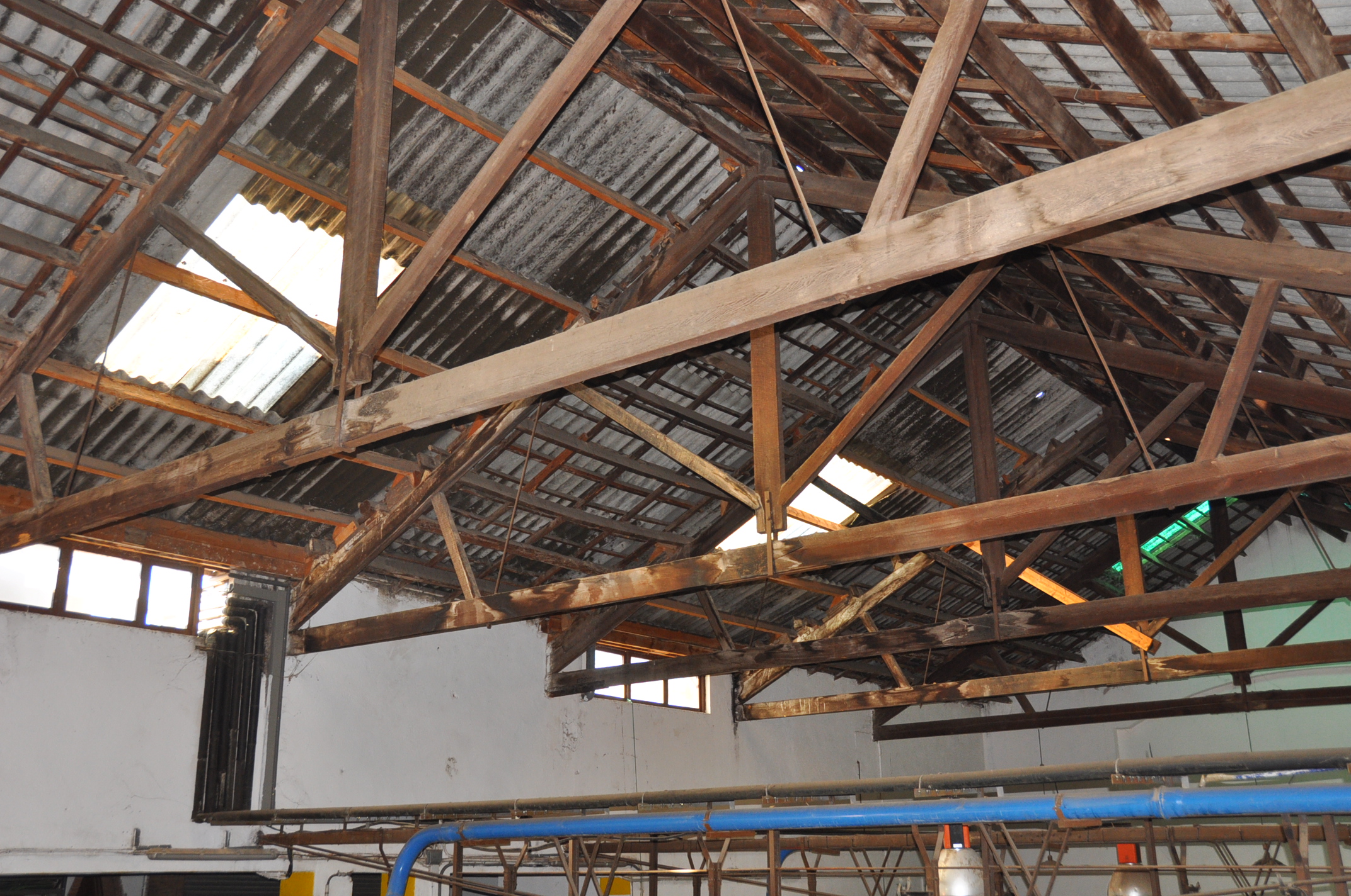 La intervención estructural de Arqestructura: Después de un primer estudio de conservación y refuerzo de las cerchas de madera existentes, el mal estado de conservación de la madera nos llevó a optar por el camino de su sustitución funcional. Diseñamos así nuevas cerchas de madera reproduciendo al máximo el sistema estructural existente. La premisa principal fue la máxima utilización de las técnicas tradicionales y el sistema constructivo original hecho que se puede apreciar en las uniones por encaje, como se hacia entonces, de los diferentes elementos de madera de la cercha. La nueva estructura metálica fue suspendida de dos de las cerchas centrales nuevas.