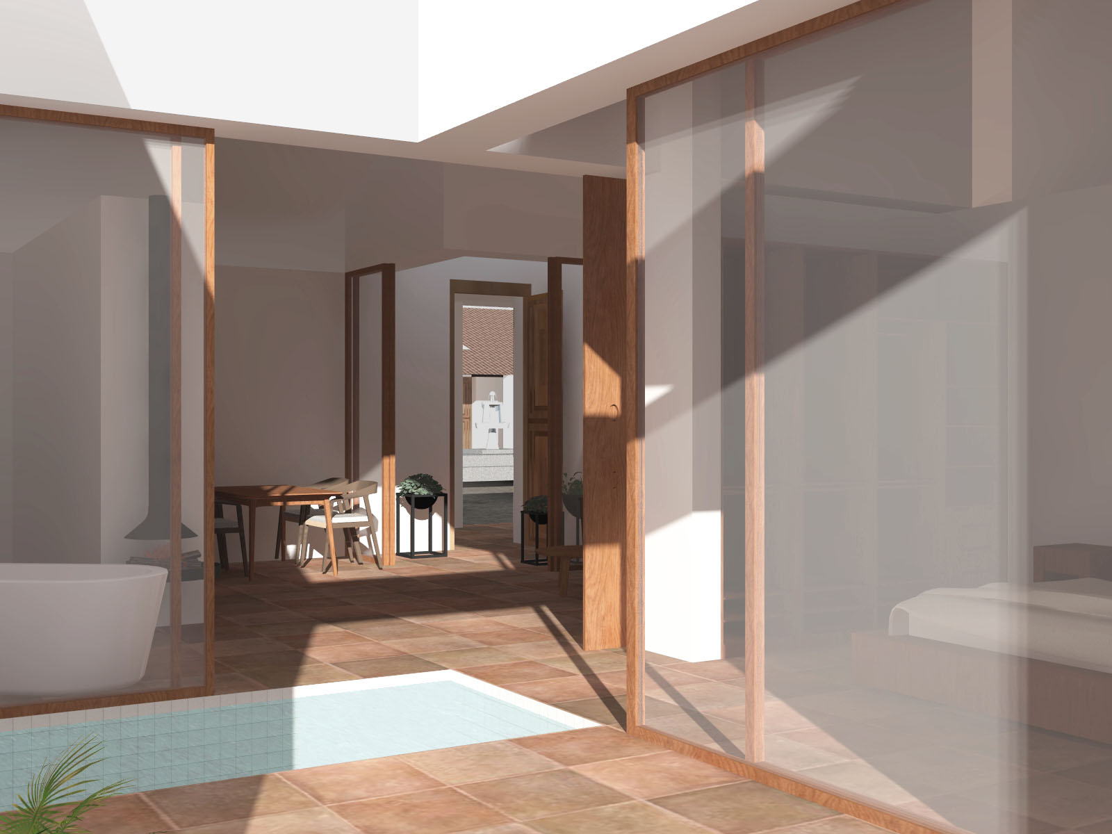 El cortijo mayor aloja ocho suites, restaurante, bar y gimnasio, mientras que el menor contiene cuatro suites, spa y la residencia del propietario. La arquitectura está condicionada por el clima extremo, la topografía, la orientación solar y las vistas; incorporando elementos de arquitectura popular y tradicional como patios y porches que forman espacios intermediarios.