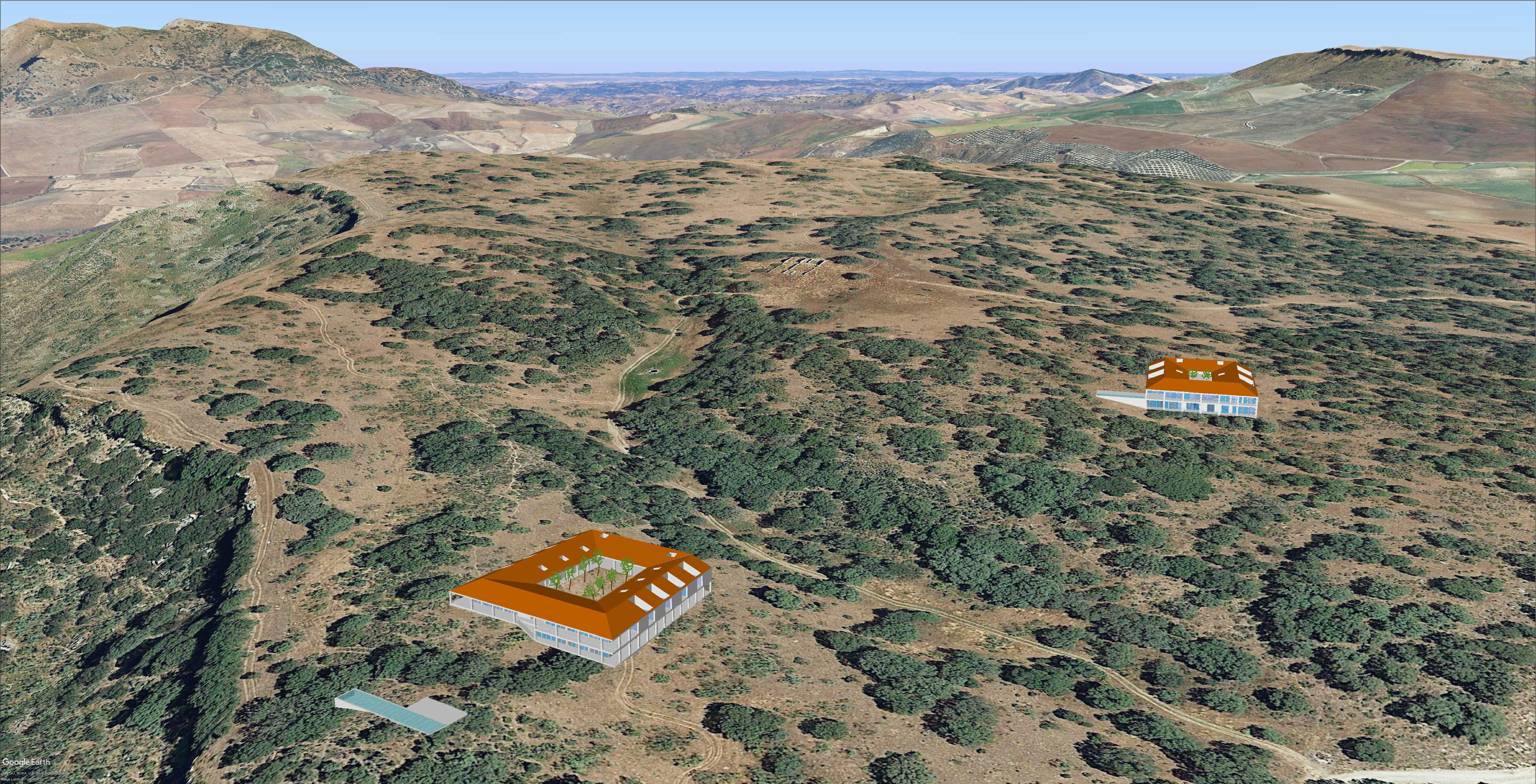 Situada a casi 1000 m de altitud en las montañas de Ronda, Andalucía, en una reserva natural que contiene restos arqueológicos ibéricos, esta propuesta de resort rural consta de un par de edificios ‘cortijo’ cuya modernidad solo se hace patente de cerca. Buscando nada más que minimizar su huella visual y ecológica en deferencia al paisaje, el proyecto aspira a ser arquitectónicamente discreto y silencioso.