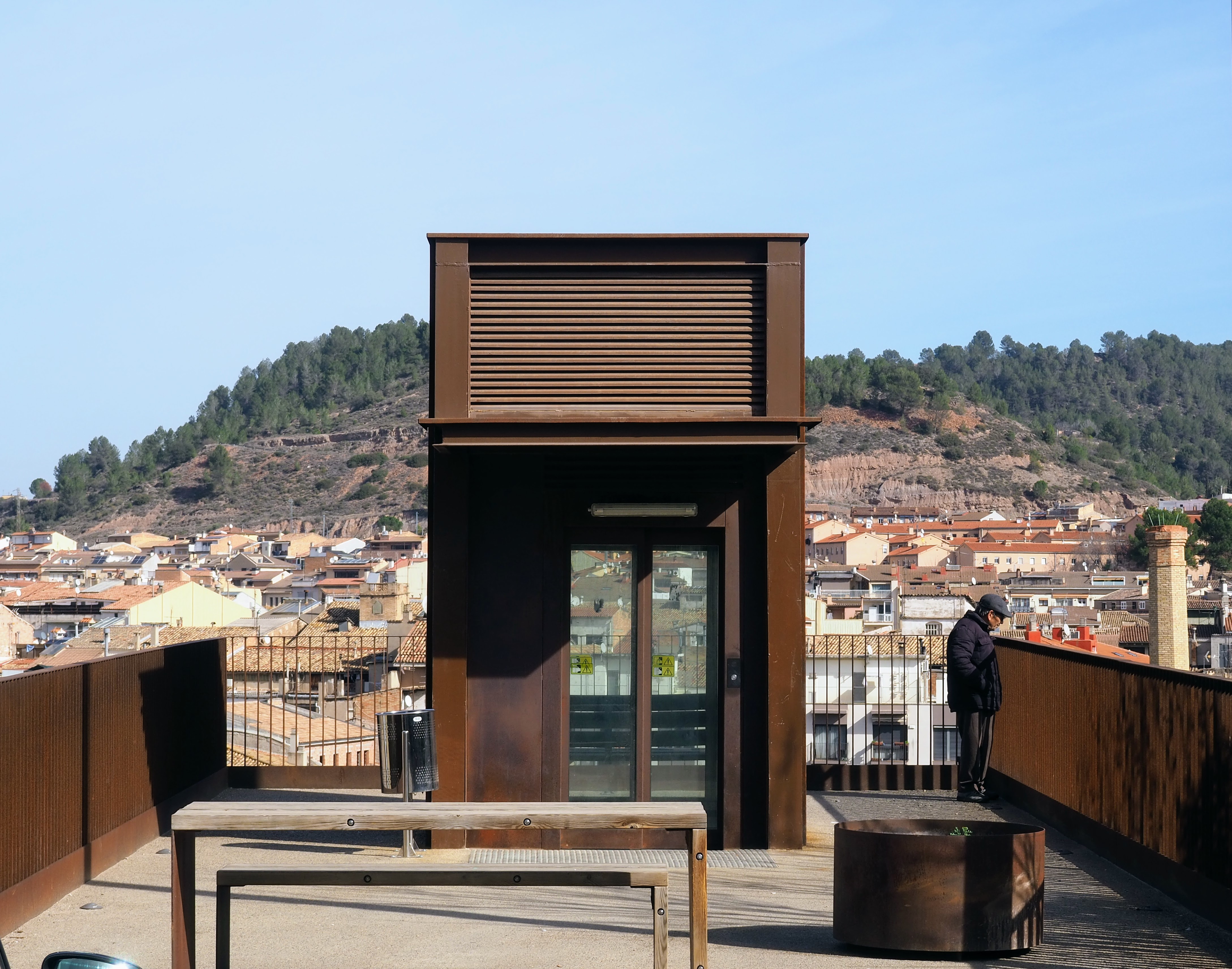 Actuación urbana consistente en la instalación de un ascensor público que mejora la comunicacion entre el barrio de la Rampiña de la población de Sallent y el resto de casco urbano. El ascensor salva un desnivel de 17 metros existente entre la calle de la Concepción del citado barrio y la cota de la carretera que dirige hacia el centro urbano de la población de Sallent. El proyecto incluye como prolongación de la C/ de la Concepción la construcción de una plataforma volada, apoyada en la estructura del ascensor, y que ofrece vistas panorámicas de Sallent.