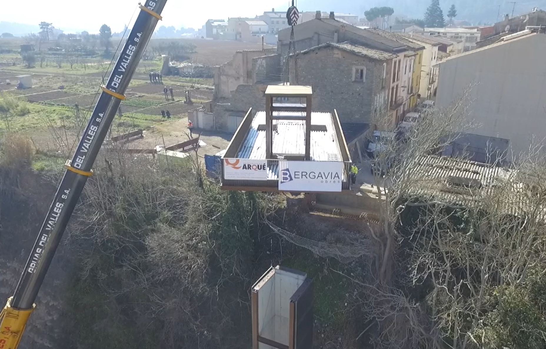Como hecho destacable de este proyecto resaltamos el proceso constructivo que planteó construir la plataforma mirador desplazada de su ubicación definitiva, facilitando así su ejecución sin andamios y sin exposición a las alturas. Una vez ejecutada la plataforma se alzó con una grua que la ubicó en su posición definitiva.
